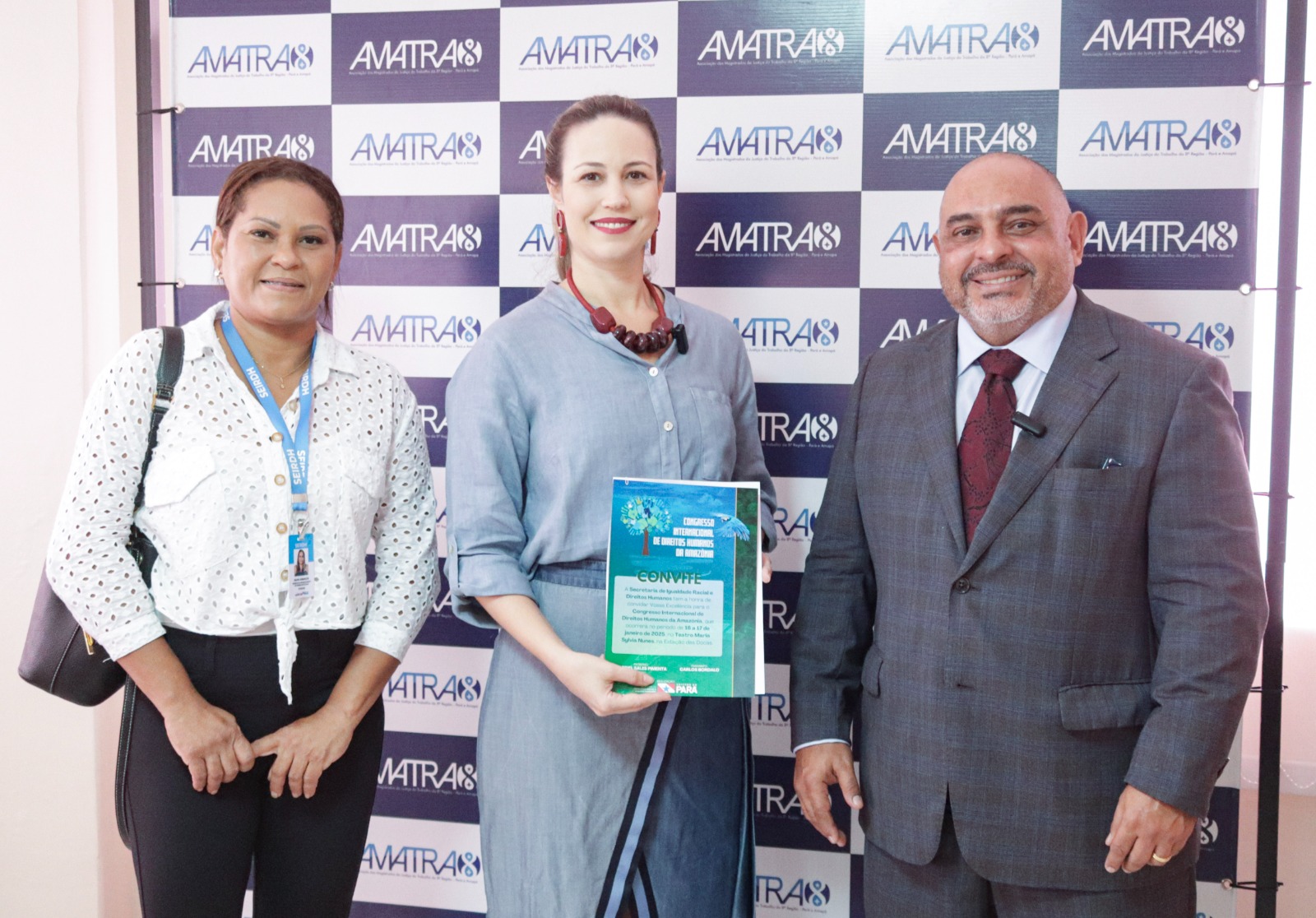 Na ocasião, o secretário também encontrou-se com a presidente da Associação dos Magistrados da Justiça do Trabalho da 8ª Região (AMATRA 8), juíza Roberta Santos, e também fez o convite para o Congresso.