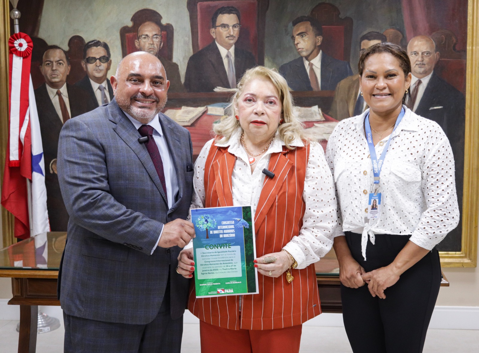 O titular da Secretaria de Estado de Igualdade Racial e Direitos Humanos (Seirdh), Jarbas Vasconcelos, reuniu-se, nesta quinta-feira (10), com a presidente do Tribunal Regional do Trabalho da 8ª Região (TRT8), desembargadora Sulamir Monassa, na sede do TRT8, e a convidou para o Congresso Internacional de Direitos Humanos da Amazônia (Cidhama), que ocorre nos próximos dias 16 e 17 de janeiro, no teatro Maria Sylvia Nunes, da Estação das Docas.