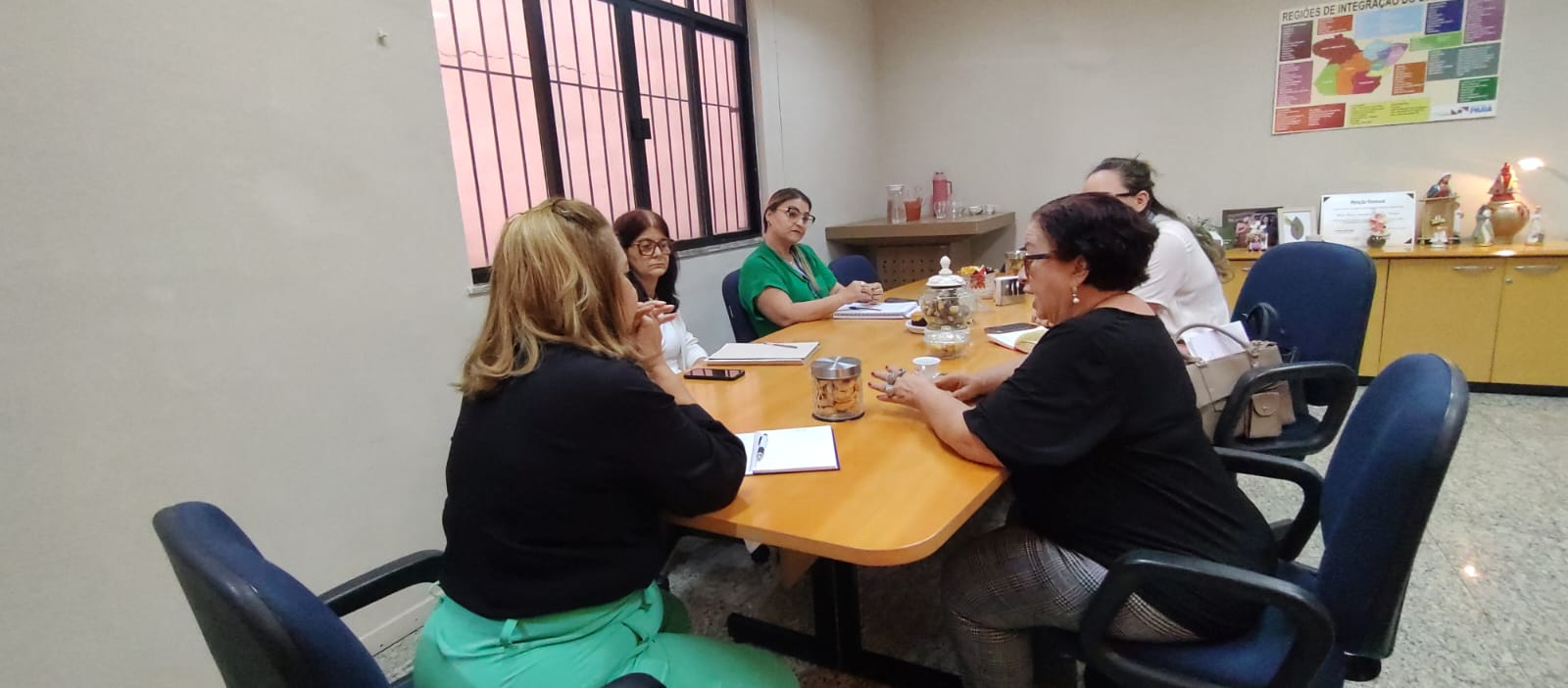 No dia 6 de agosto, a titular da Secretaria de Igualdade Racial e Direitos Humanos (Seirdh), Edilza Fontes, juntamente com sua Chefe de Gabinete, Gabriela Ferreira, esteve na Secretaria das Mulheres (Semu) para discutir futuras ações realizadas de forma integrada entre os dois órgãos. Na oportunidade, as duas foram recebidas pela Secretária Adjunta da Semu, Cleide Amorim; pela Diretora de Articulação de Políticas para Mulheres, Clarice Leonel; pela Coordenadora de Enfrentamento à Violência e Promoção dos Direitos das Mulheres, Márcia Jorge; e pela Diretora de Autonomia Econômica e Políticas Transversais, Marisa Lima.